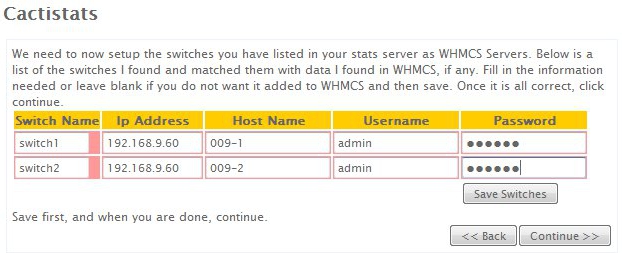 - Edit the Switch Name and Host Name fields if desired. This step can be completed after the install as well. Supply the Username and Password for your switch.